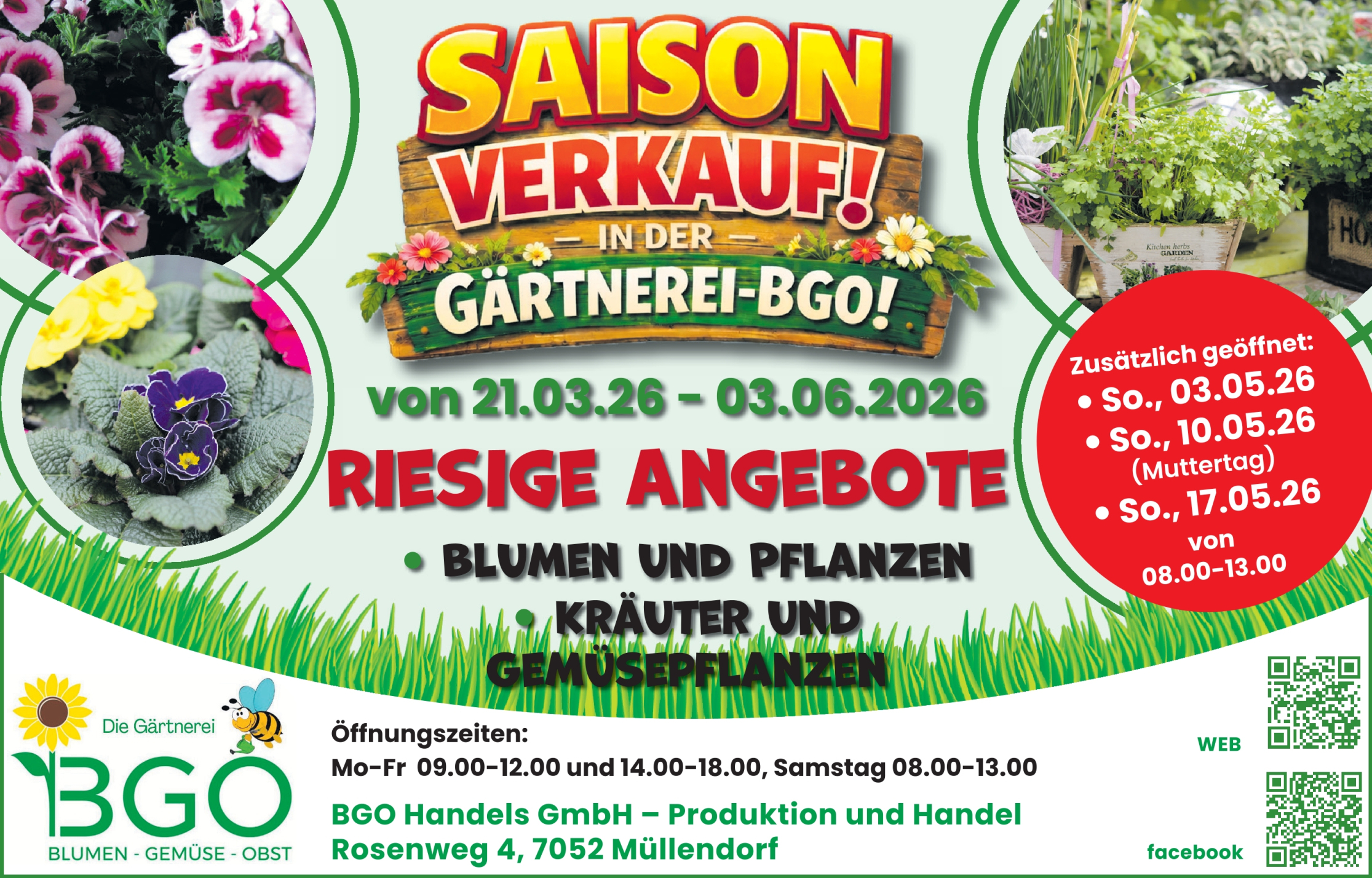 Ab dem 21. März 2026 startet unser Saisonverkauf – mit einer großen Auswahl an frischen, kräftigen Pflanzen für Garten, Balkon und Beet.